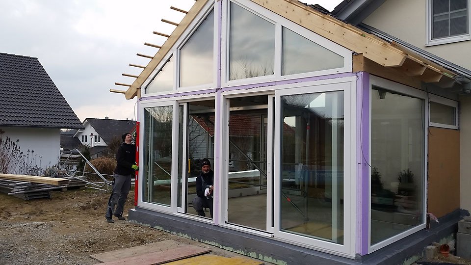 Ausführung: Aluminium-HolzBesonderheiten: Erweiterung mit Satteldach, Wintergarten mit ZiegeldachBaujahr: 2015