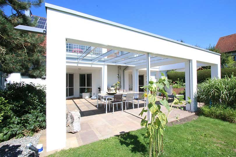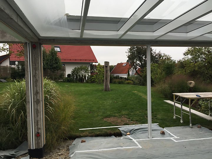 Besonderheiten: Erweiterung um Terrassendach mit Zip-Markisen senkrecht im Stil des HausesBaujahr: 2014