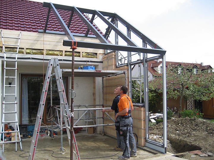 Ausführung: Aluminium-KunststoffkonstruktionBesonderheiten: Wohnwintergarten mit TerrassendachBaujahr: 2010