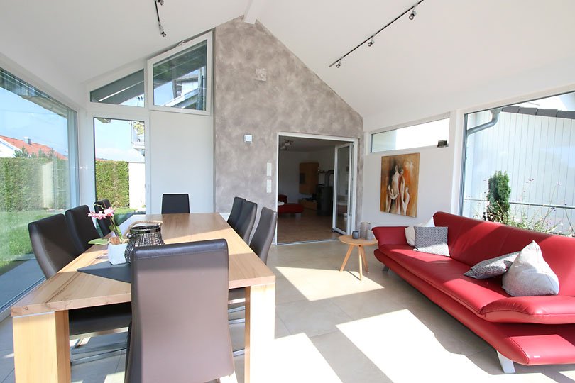 Besonderheiten: Erweiterung mit Satteldach, Wintergarten mit Ziegeldach