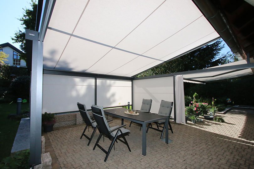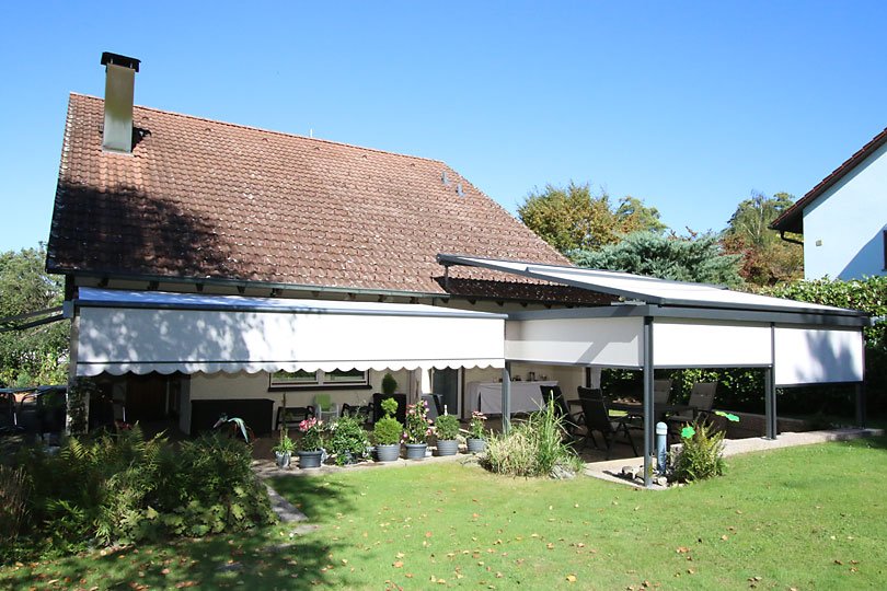 Besonderheiten: Regensichere Markisenkonstruktion