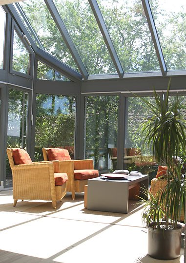 Ausführung: Aluminium-KunststoffkonstruktionBesonderheiten: Satteldach einseitig geschlossen, höheres RaumgefühlBaujahr: 2006