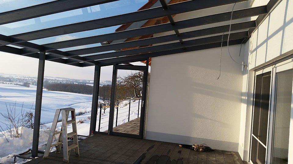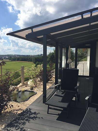 Besonderheiten: Überdachung Sitzplatz mit Markise uns senkrechter Jalousie