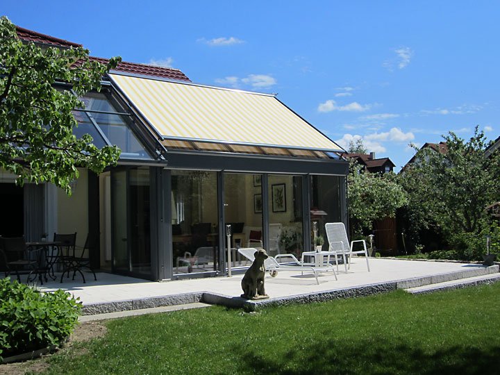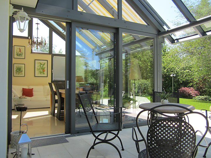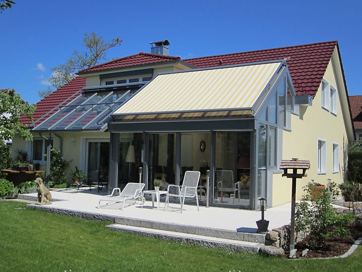 Ausführung: Aluminium-KunststoffkonstruktionBesonderheiten: Wohnwintergarten mit TerrassendachBaujahr: 2010