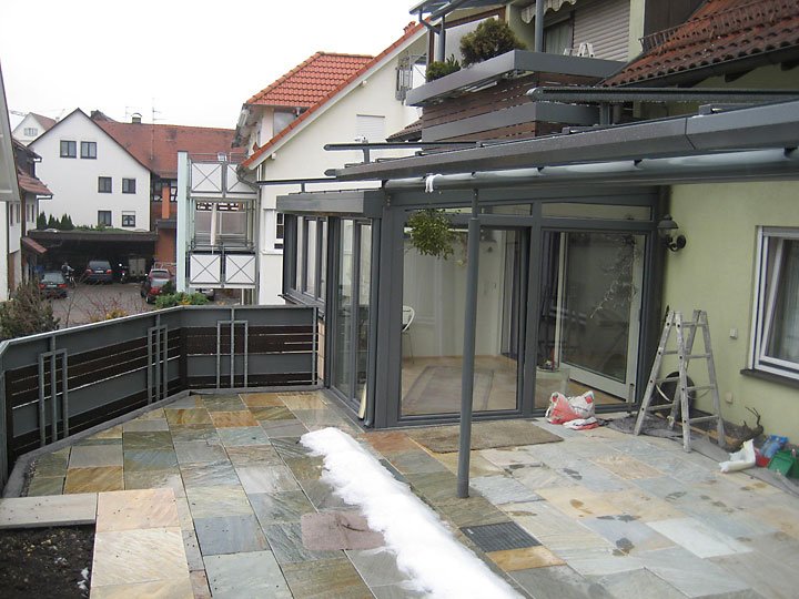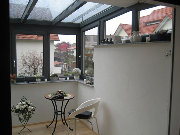 Besonderheiten: Wintergarten und Terrassendach mit Stauraum für Polsterung